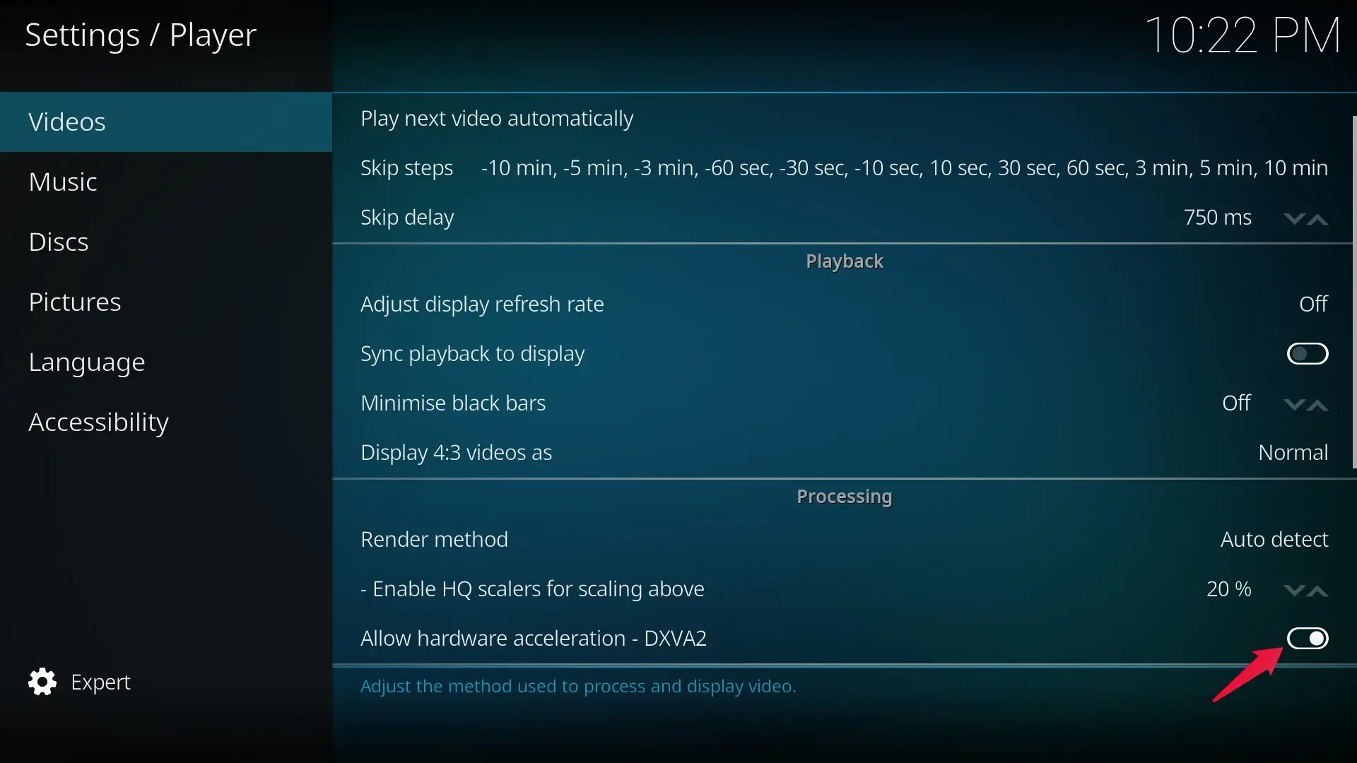 3. Kodi'de donanım ivmesini kapatın