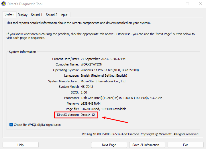 PC'nizde en son DirecTX sürümüne sahip olmanız gerekir. Şu anda, en son DirecTX sürümü DirectX 12'dir. Bilgisayarınızın DirectX 12 olup olmadığını kontrol edin ve eğer değilse, KODI'yi Windows 11'de çalışmadığını veya çökmediğini düzeltmek için güncelleyin.