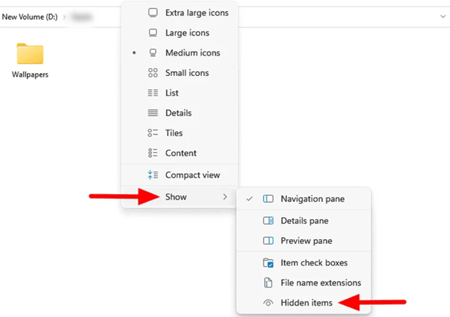 2. Üzerine tıklayınGörüşEn üstte seçenek, ovmakGöstermekve sonra kontrol etGizli Ürünler.
