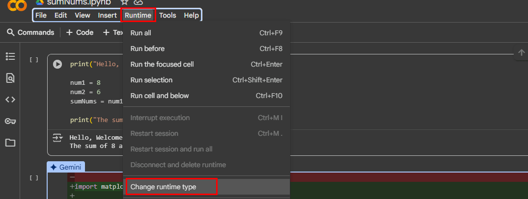 Örneğin, Colab'ın AI özelliğini şöyle istedim: “1-10 numaralarını çizmek için Python kodu yazın ve kareleri” ve kodu anında oluşturdu.