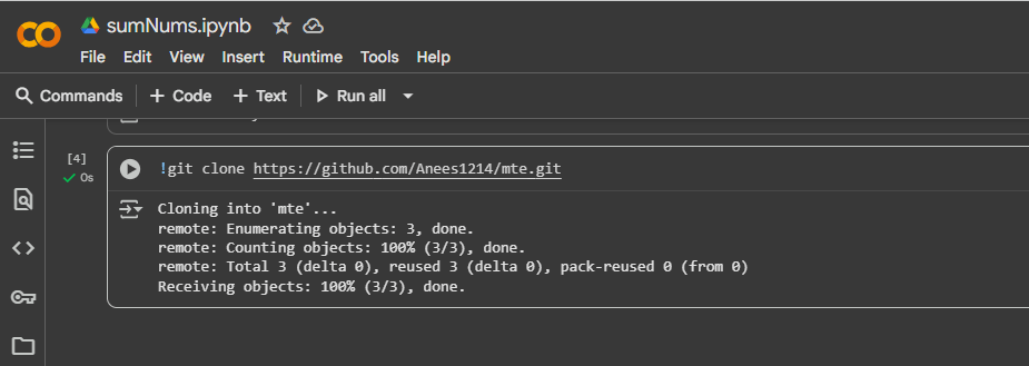 Github depolarını doğrudan colab ortamınıza klonlayabilirsiniz. Bu, mevcut projeleri getirmenize, test etmenize ve hatta dosyaları manuel olarak indirmek ve yüklemek zorunda kalmadan değişiklik yapmanıza yardımcı olur. Örneğin, GitHub'dan mevcut bir projeyi kullanmak istiyorsanız, bir colab hücresinde aşağıdaki komutu çalıştırarak klonlayabilirsiniz: