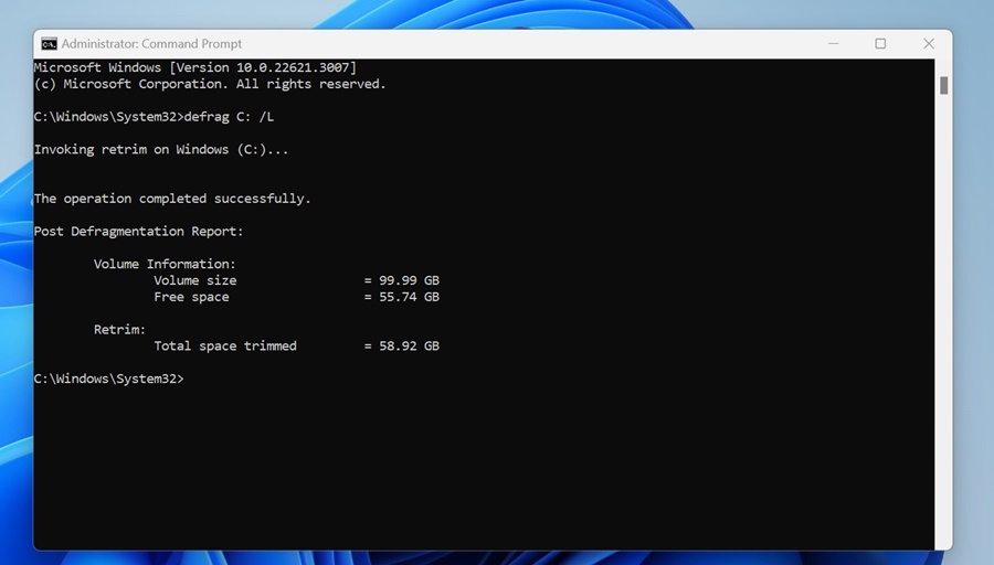 4. Bir SSD'yi optimize etmek istiyorsanız şu komutu yürütün: