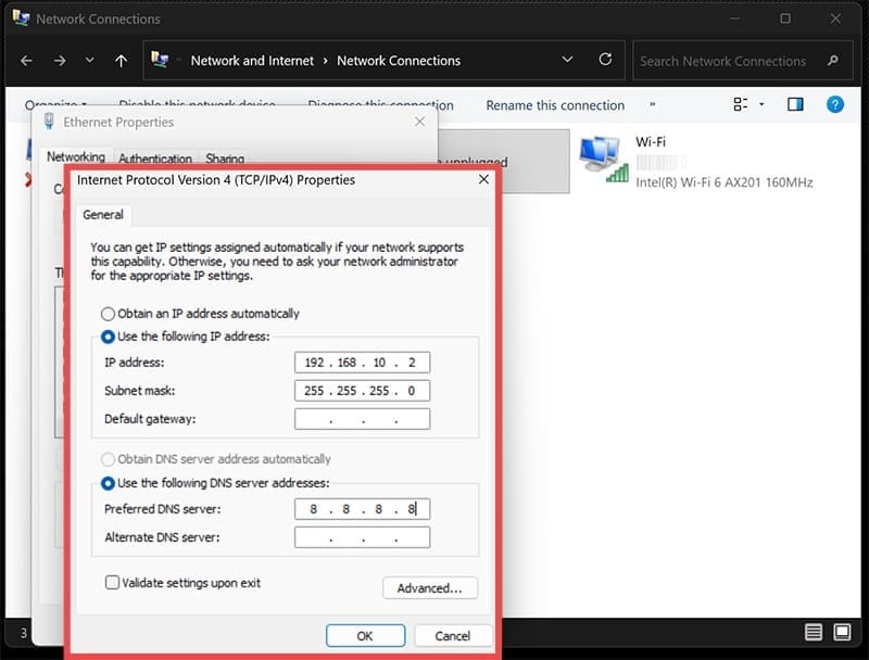 - Tercih edilen DNS sunucusu: 8.8.8.8