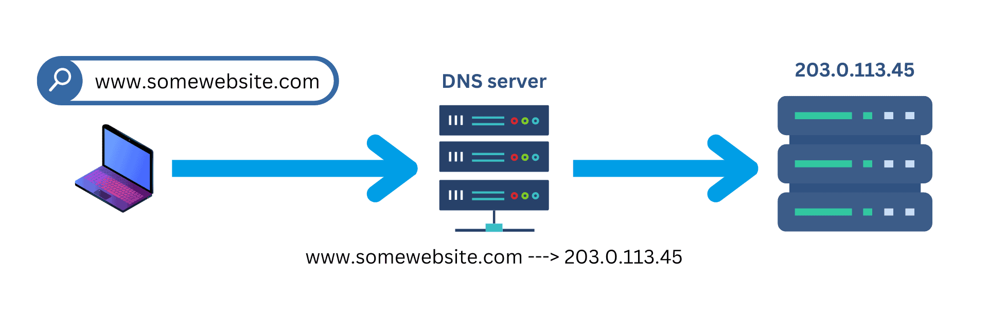 Bir alan adı Sistem Sunucusu veya DNS sunucusu, sizi ziyaret etmek istediğiniz web sitelerine bağlamada önemli bir rol oynar.ExpressVPN.com veya Google.com gibi alan adlarını IP adreslerine dönüştürür ve tersi de geçerlidir.