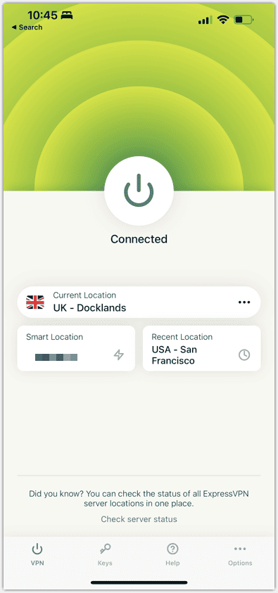 İstediğiniz yere dokunduktan sonra,ExpressVPN, IP adresinizi seçtiğiniz konumla ilişkili bir olarak değiştirmelidir.Aslında, bu Netflix bölgenizi bu yere değiştirecektir.