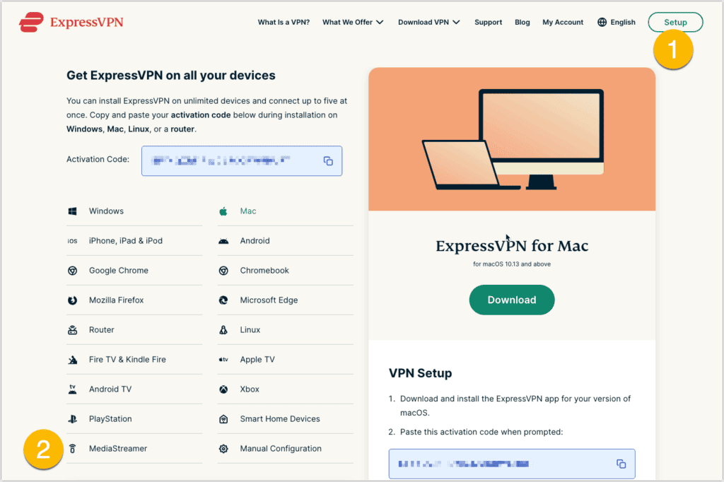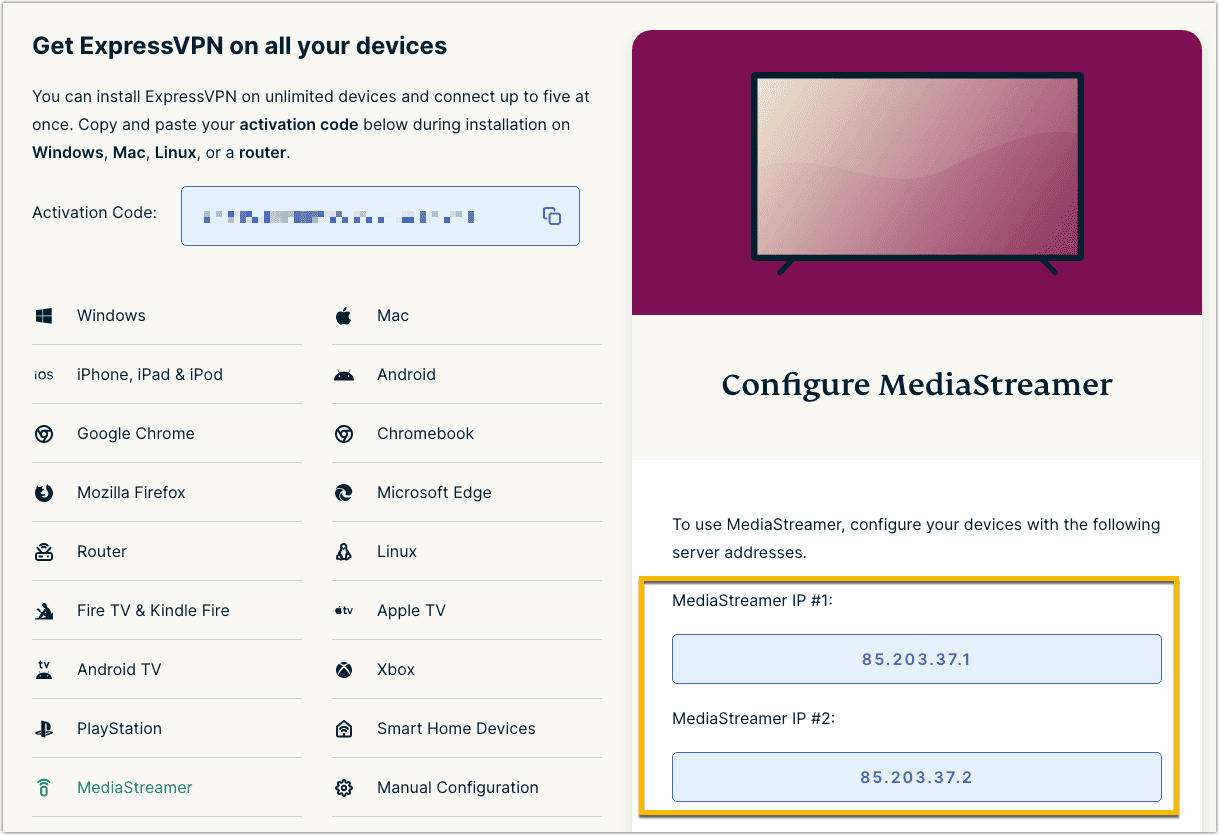 - IP'niz kaydedildikten sonra Kurulum> MediaDreamer'a gidin.MediaDreamer ExpressVPN'nin Akıllı DNS Proxy Hizmeti