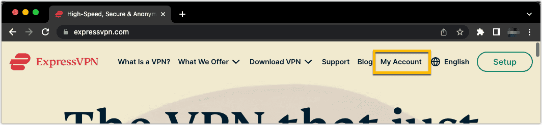 - SmartTV'nizde web tarayıcısını başlatın,ExpressVPN Web Sitesive sonra hesabıma giriş yapın. E -posta gelen kutunuza gönderilen bir doğrulama kodu girmeniz istenebilir, bu nedenle e -postanızı hızlı bir şekilde kontrol edebileceğiniz bir cihaza sahip olduğunuzdan emin olun.
