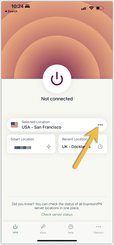 - ExpressVPN uygulamasının ana ekranındaki Elipsis'e dokunun.