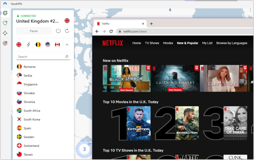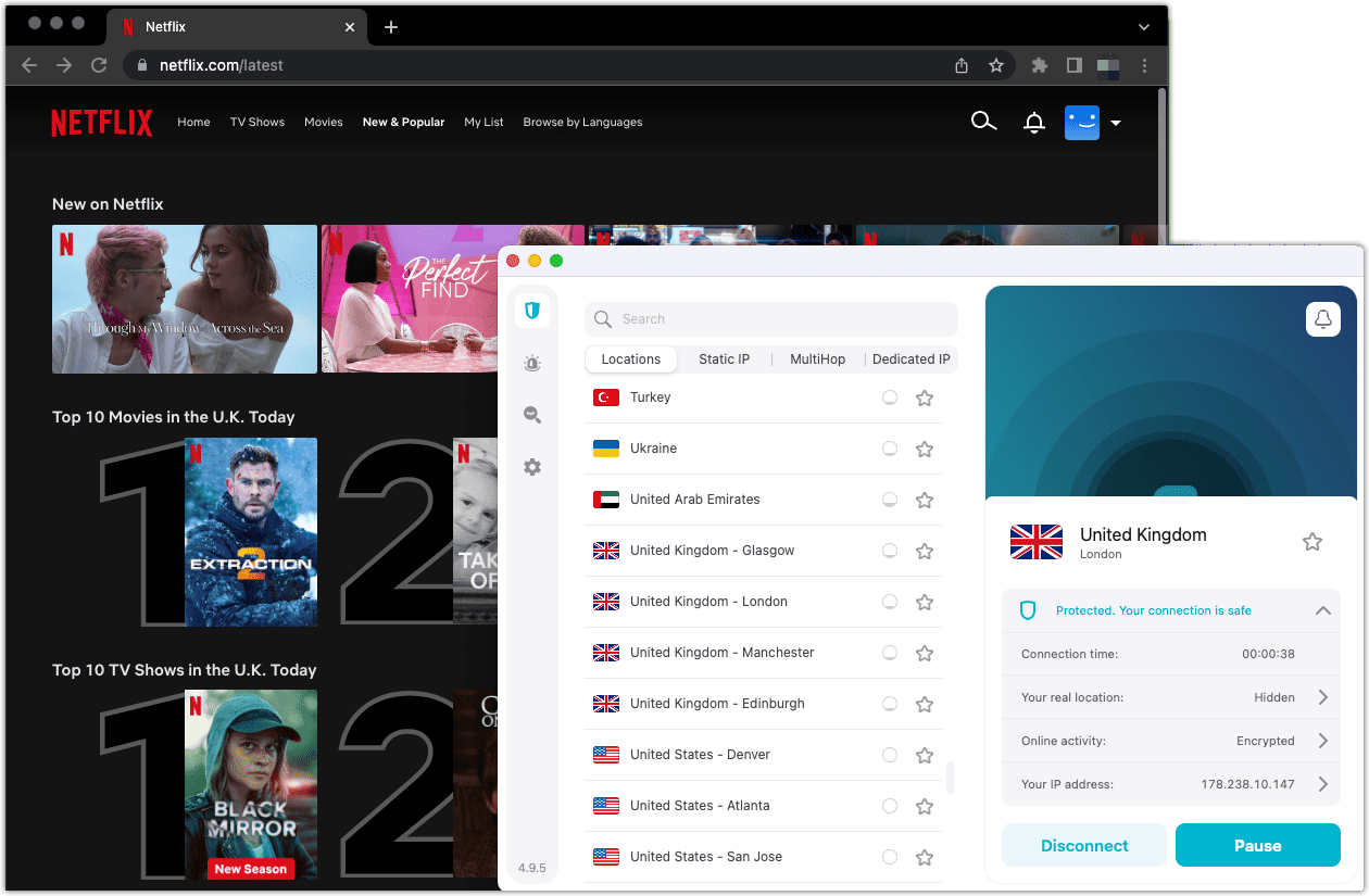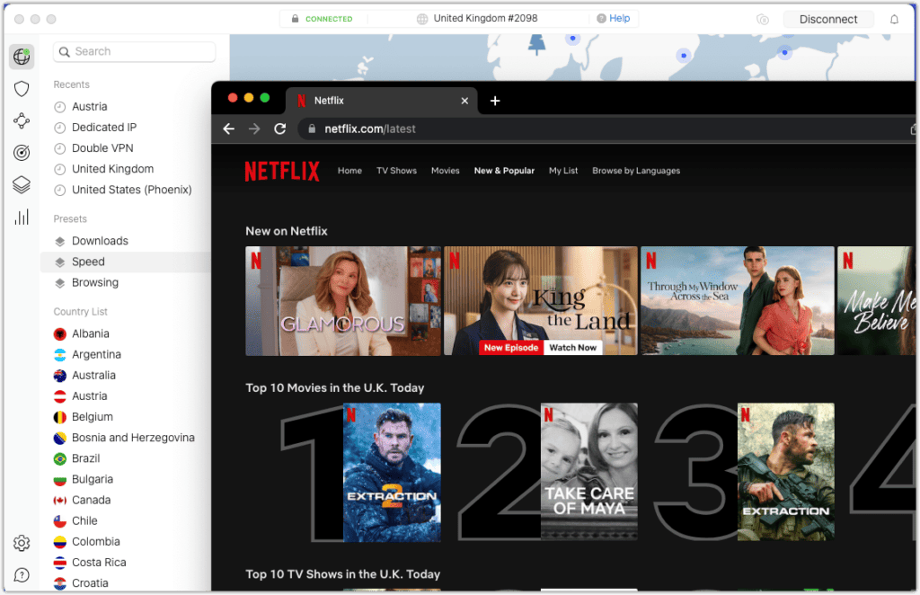 - Netflix sitesine geri dönün, sayfayı yenileyin ve İngiltere'de olduğunuz gibi Netflix içeriğini veya hangi Netflix ülkesini engellediğiniz gibi izleyin.