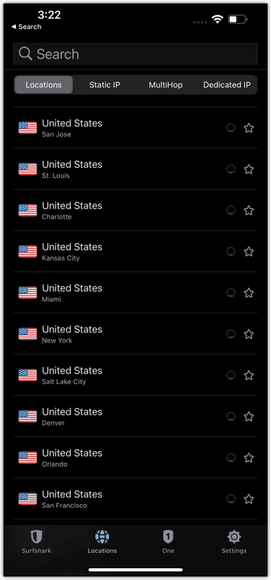 - Konumlar ekranına ulaştıktan sonra, arama kutusuna yazarak engellemek istediğiniz Netflix ülkesini arayabilirsiniz. Örneğin, Netflix'i engellemek istiyorsanız, “ABD” yazın. ABD gibi bazı ülkelerde, genellikle şehir olarak etiketlenmiş birkaç yer sunulacak. Bağlanmak için bir şehre dokunun.